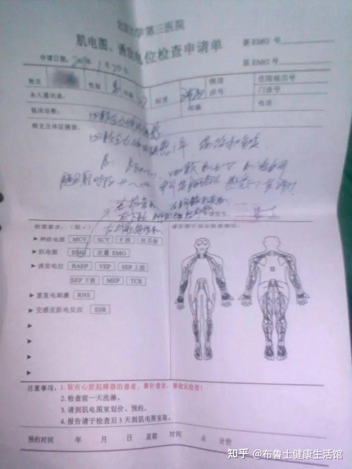 三天後,我到了北京大學第三醫院,由於掛不上院長的號,隨便掛了個專家號,張燕醫生接待了我,張醫生說:“小夥子,你躺這裡,我先給你檢查一下。” 然後搖搖我的手,敲敲我的腿。還用牙籤輕輕劃了我的腳心,然後說道 “四肢腱反射亢進,肌張力增高,錐體束征陽性,做個肌電圖確診一下吧,我給你做 5 個段,這樣就能夠確診這個病了,” 然後給我開了肌電圖檢查申請單。